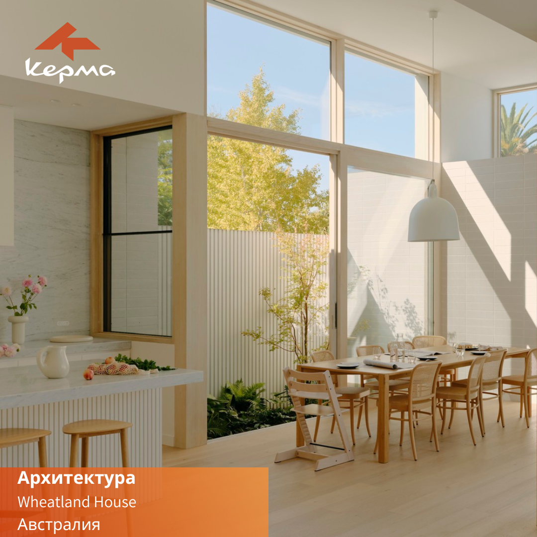 🏡 Wheatland House от Tom Robertson Architects — тёплый, наполненный светом дом в тихом, обсаженном деревьями пригородном районе. 🧱 Новая пристройка находится за существующим историческим зданием, скрытым от улицы. Стены по периметру построены из светлого кирпича, чтобы создать ощущение безопасности и постоянства, в то время как интерьер залит тёплыми оттенками и естественным освещением. 🏚 Были сохранены четыре спальни оригинального исторического дома и рабочий кабинет. Большая гостиная каскадом переходит в первоначальное жилище. Примыкающая кухня переходит в столовую, а сзади, за кирпичной стеной, находится гараж. Застекленные раздвижные двери из гостиной и кухни ведут на открытую террасу и в сад. 😌 В доме царит ощущение порядка, объединяя две архитектурные эпохи и создавая при этом спокойное и пригодное для жизни пространство.