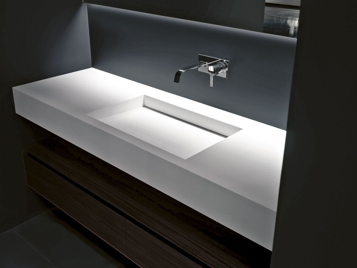Всегда есть запросы на столешницу для ванной с щелевым сливом. Обычно показывают визуализации или фотографии существующих столешниц в качестве примера. Но за красотой фотографии забывают об одной вещи. Тут необходимо разобраться поподробнее. Однако, чтобы начать, вот несколько изображений, о чем идет речь. Такие раковины могут быть навесные на стену или встроенные в столешницу. как большие, так и маленькие. Варианты, более классические и дизайнерские. Их объединяет щель - форма сливного отверстия. Да, листовой акриловый камень может быть использован для производства таких раковин. Некоторые из них даже можно сделать из кварцита. Но! Это будут копии керамических изделий, а их производство будет совсем иным. Почему это имеет значение?