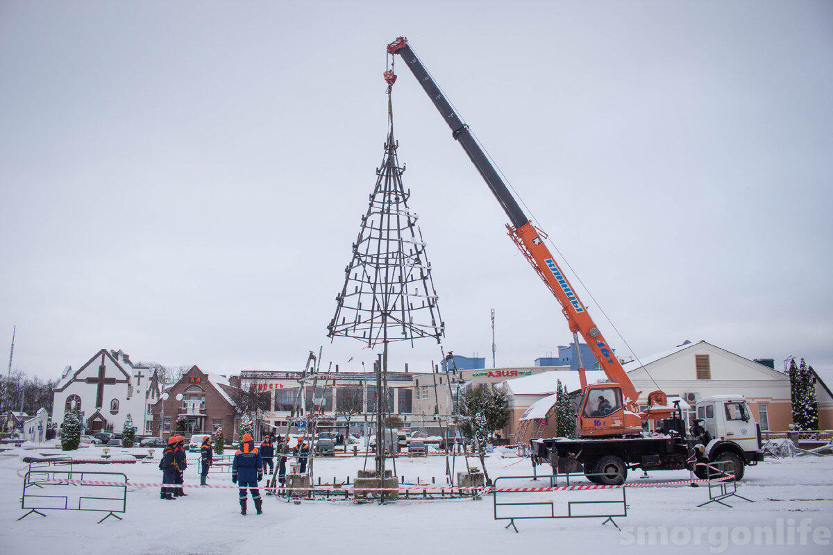 Разместиться она традиционно на центральной площади города возле здания райисполкома. На протяжении 4 декабря специалисты здесь монтируют металлический каркас будущей новогодней красавицы, который в последующем будет обшит ёлочками. Высота городской ёлки в Сморгони в этом году составит чуть больше 18 метров. В диаметре у основания она будет достигать 6 метров. Финальным аккордом станет украшение ёлки иллюминацией и новогодними игрушками. По традиции она будет радовать сморгонцев до второй половины января. >>> Чтобы быть в курсе всех новостей, подписывайтесь на наши Телеграм канал и аккаунт в Инстаграм