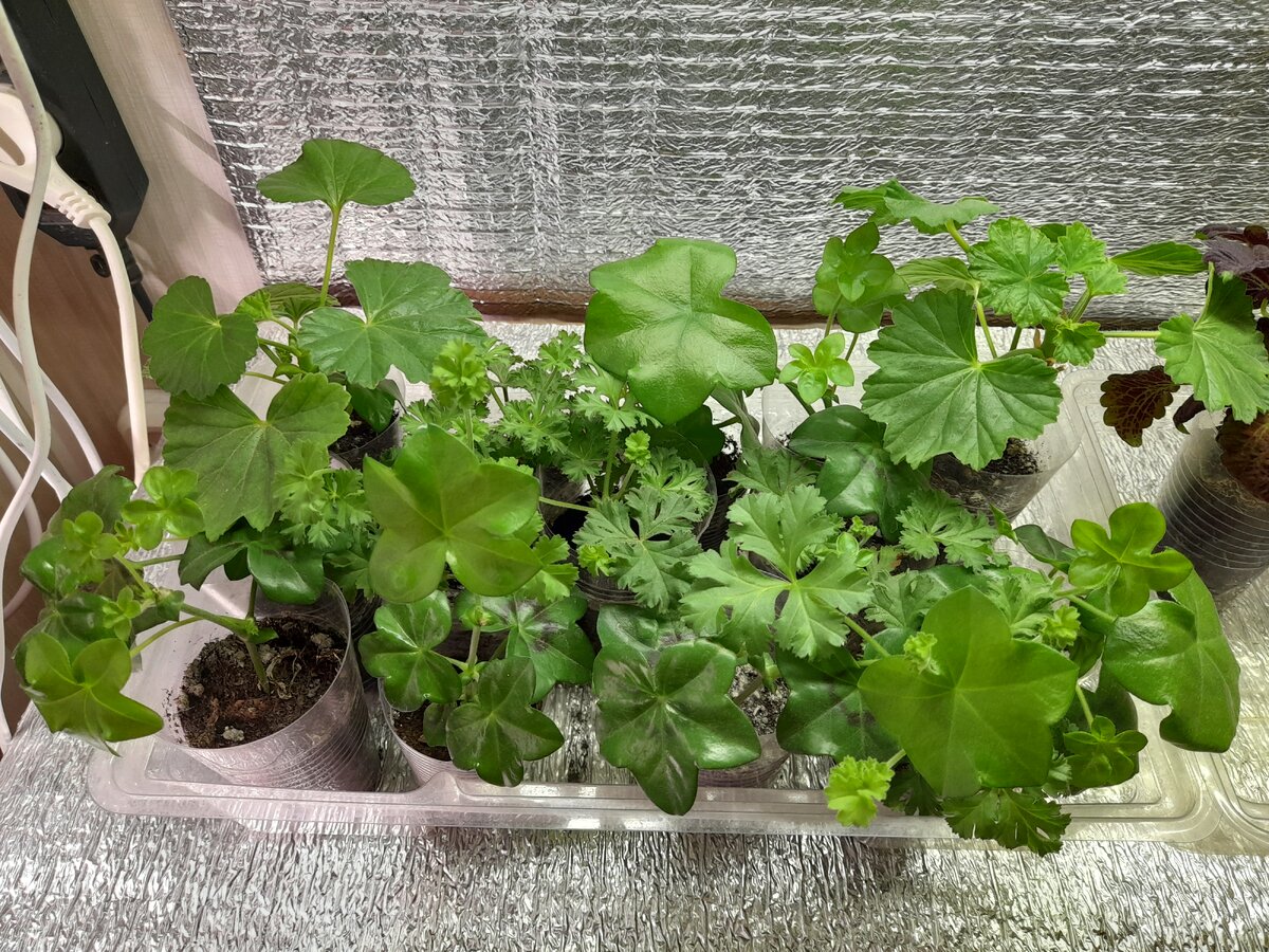Еще в сентябре я начеренковала колеусы и пеларгонии. В этом году впервые результат укоренения был 100%. Стояли эти растения на подоконнике с естественным освещением. Подходила я к ним раз в неделю. Поливала, да прищипывала. Недавно заметила, что колеусы стали терять окраску. Значит уже пора досвечивать. Протерла подоконник, постелила фольгированный материал, установила опору для лампы. Летом на ВБ купила разрекламированную лампу мощностью 30Вт. Кто в теме, думаю, узнают ее. Этой лампой я собираюсь досвечивать рассаду перца. А пока перца нет, посветит пеларгонии с колеусами. Заодно и посмотрю, стоит ли она своих денег. В стаканчики с рассадой подсыпала грунта, полила с удобрением. На свободное место под лампой поставила еще два горшка с орхидеями. Одну я омолодила. Ей уже больше десяти лет, цвела хорошо, но вид был неряшливым. Листья вылезли из горшка и клонились вниз. Я обрезала верхушку с корнями и посадила в грунт. С ней все хорошо, собирается порадовать меня цветением. А вторая- это