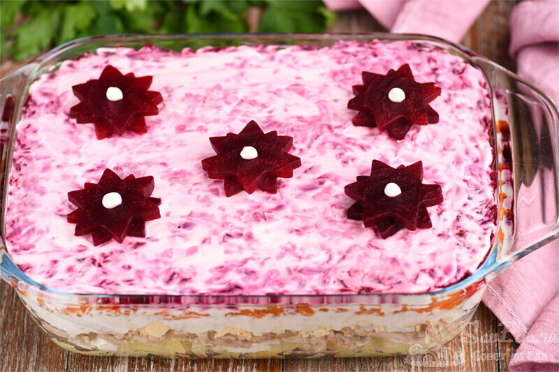 Салат рыба под шубой, но без селедки (заменила 2 слоя и вкус получился другой, более нежный)