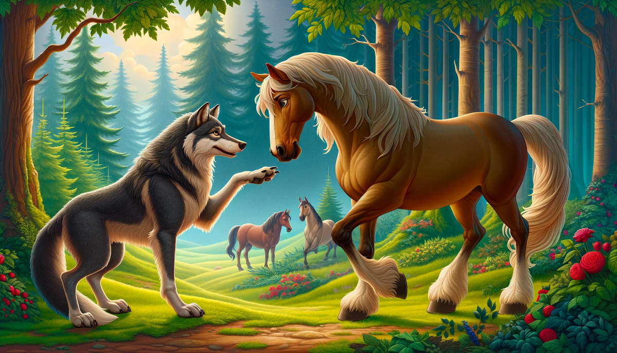 — Я рад за тебя, волк. Удачи тебе,— мирно ответил бык. Волк встретил затем лошадь. — Лошадь, не бойся! Я изменился, я больше не причиняю вреда, даже ягнятам.