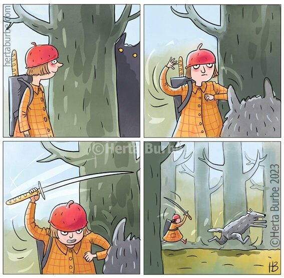 Я подписан на много разных страничек с комиксами - в основном на авторов, но также я слежу и за всякими тематическими порталами на эту тему. И всегда бывает заметно, что тот или иной автор становится популярным: его комиксы набирают все больше лайков и все активнее распространяются в сети. Работы героини сегодняшней статьи как раз очень популярны в последнее время - в прошлом году я постоянно всюду на них натыкался. А еще выкладывал в группе Смешные картинки во ВКонтакте - в итоге эти несколько из этих комиксов стали самыми залайканными постами за год. Так что я решил, почему бы снова не написать про эту художницу статью? Надеюсь, что ее работы вам понравятся! Герта Бурбе (Herta Burbė) - это литовская художница и автор комиксов. Долгое время она занималась писательством: из под пера Герты вышло множество детских книг, среди которых такие издания, как «Волшебный алфавит» (Stebuklingas Raidynas), «Морской бой в ванне» (Jūrų mūšis vonioje) и многие другие. В 2002 году писательница даже вы
