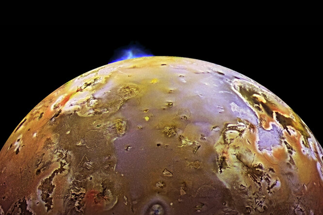 Ио – спутник Юпитера. Его диаметр составляет 3642 километра. Название спутника происходит от имени Ио (жрица Геры — древнегреческая мифология). История открытия Но самой загадочной является Ио – Галилео Галилей впервые открыл ее в 1610 году и назвал ее Юпитер I. Одно то, что планета активна и на ней до сих пор идет вулканическая деятельность, привлекает астрономов планеты Земля. И притом деятельность эта довольно бурная. Девять действующих вулканов на ее поверхности выбрасывают в атмосферу вещества на 200 км и более – такой мощи можно позавидовать. В нашей Солнечной системе только две планеты имеют вулканическую деятельность – Земля и спутник Юпитера Ио. Поверхность спутника Ио Ио имеет множество вулканов (около 400). Это наиболее геологически активное тело Солнечной системы. В процессе сжатия коры Ио образовалось около ста гор. Вершины некоторых, к примеру, Южная Боосавла, превышает пик Эвереста в два раза. На поверхности спутника располагаются обширные равнины. Поверхность его имеет