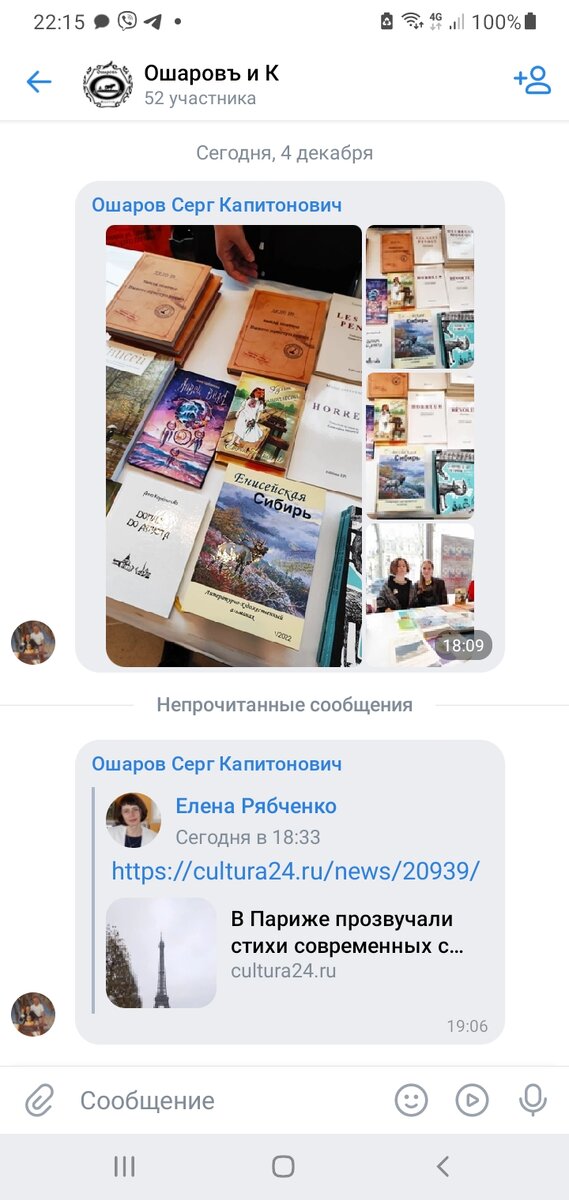 04.12.2023 Понедельник Как сообщил сегодня Президент "Издательского дома "Ошаровъ и К" Сергей Ошаров, экземпляры "Енисейской Сибири", литературно-художественного альманаха – вкупе с другими изданиями Красноярского края – легли на книжные прилавки Парижа. Сибирские девушки из Красноярска участвуют в IX салоне русской книги «Русская литература» в столице Франции. Здесь представлены их произведения, книга и альманах "Енисей" (Красноярск) Информация пришла от Елены Рябченко На портале Культура24, по этому поводу сказано: В Париже прозвучали стихи современных сибирских авторов Оксана Горошкина и Екатерина Малиновская представили парижанам литературный альманах «Енисей» и «Енисейская Сибирь», сборник «Банды поэтесс» и собственные стихи. Чтения прошли в рамках IX салона русской книги «Русская литература» в столице Франции. Красноярские поэты впервые стали участниками салона. Словом, to Bonjour, Paris! 2 /3 В этом году лейтмотивом встречи стало празднования 130-летия со дня рождения одного