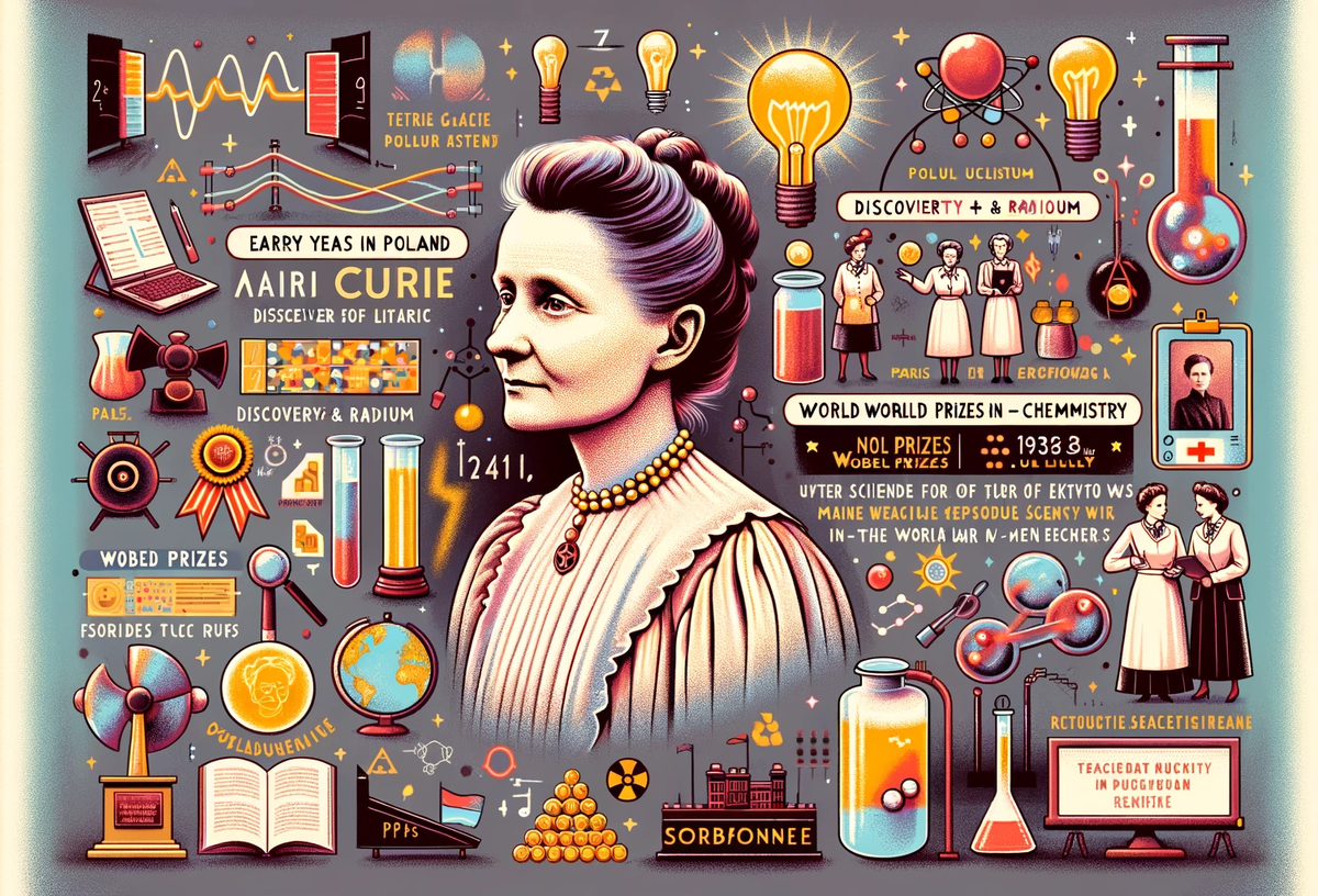 Ранняя часть жизни Марии Склодовской-Кюри была наполнена как трудностями, так и удивительными успехами, которые сформировали её как выдающегося ученого. Она олицетворяла собой устремленность к знаниям и неутолимую жажду открытий, что в дальнейшем привело её к выдающимся научным достижениям и мировому признанию.