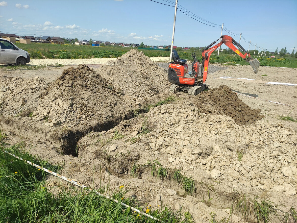 ⛳ КП Ижорец. 💥🔥💥🔥 🗨️День второй⛅ 📌 Траншея под электрический кабель (глубина 0,8м). Засыпал траншею песком и после укладки кабеля закопал. 🔌 📌 Передвинул будущее свайное поле на 2м (собрал песок, текстиль) и равномерно накрыл песком будущее свайное поле.🚜 🤚Готов ответить на Ваши вопросы ☎89110199660 Антон.