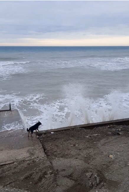 Зная, как Боцман любит тревожное море, после прошедшего сильного ненастья, очень многие волновались - не случилось ли чего с собакой? Но всё в порядке, море штормит, пирс на месте, собака тоже.