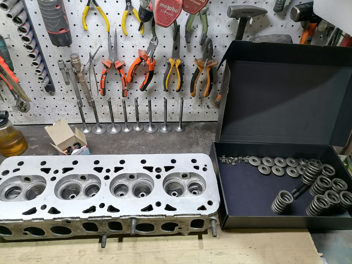 ГБЦ забрал через день - продул, прочистил - теперь можно и собирать. Предварительно, конечно, притерев клапана. Сами клапана, кстати, тоже отчищены до блеска котовьих шаров, с помощью химии и абразива, где это позволительно.