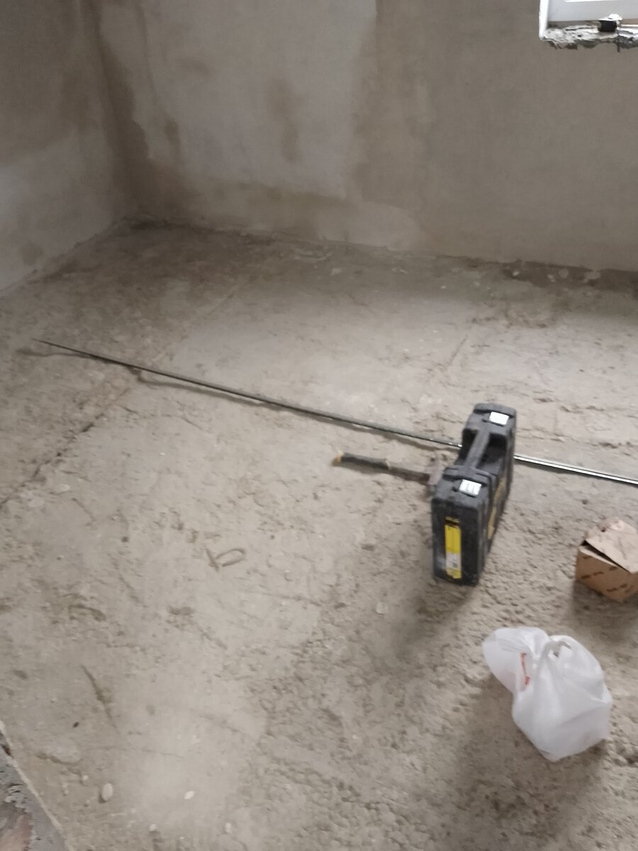 Здравствуйте! Вот с объекта в Парусе начался и второй выходной. В понедельник всю импровизированную бригаду в составе Ирины, Галины, Олега и меня настраиваем на заливку бетонных полов, а у меня в комнате на втором этаже, где деревянный пол разобрали, еще маяки не готовы. Хочешь, не хочешь, а надо. Здесь после разборки пола бетонные плиты перекрытия. видно плиты бывшие в употреблении, но хорошие, без трещин без сколов, только следы предыдущей стяжки. Вчера посмотрел, ну плиты и плиты. Заказал Ирине стандартные маяки, держатели маяком ну и семидесятые саморезы. А как уровень лазерный поставил, па бам, перепад на чуть меньше трех метрах десять сантиметров. От ноля и до тех саморезов, за которыми домой пришлось ехать. Перепад, даже точнее померил, получился двенадцать сантиметров. Неожиданно. Пришлось ехать домой и искать сто пятидесятые саморезы. А потом звонить Ирине, сто бы купила техноплекс или пеноплекс, что бы хоть чуть чуть сделать меньший слой. Подсчитал что нам нужно три