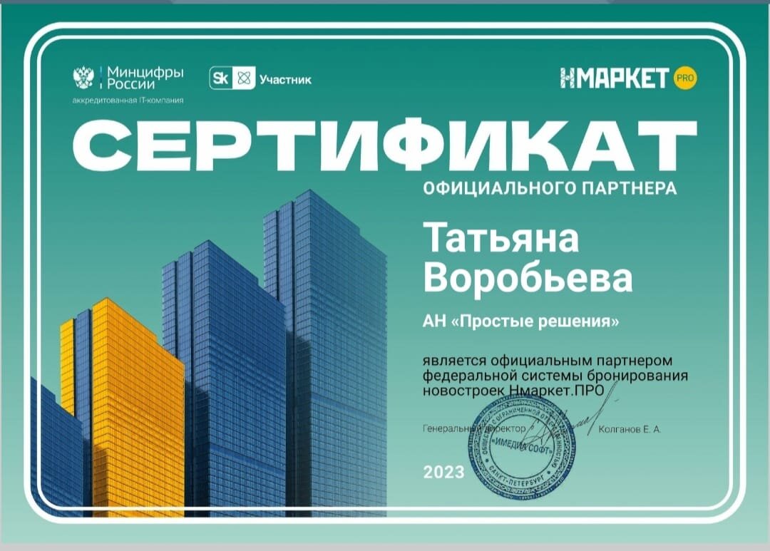 Меня зовут Татьяна Воробьева. Я более 14 лет работаю в недвижимости и около 20 лет практикующий юрист. В настоящее время я возглавляю собственное агентство недвижимости, которое является официальным партнером федеральной системы новостроек в 24 регионах России.