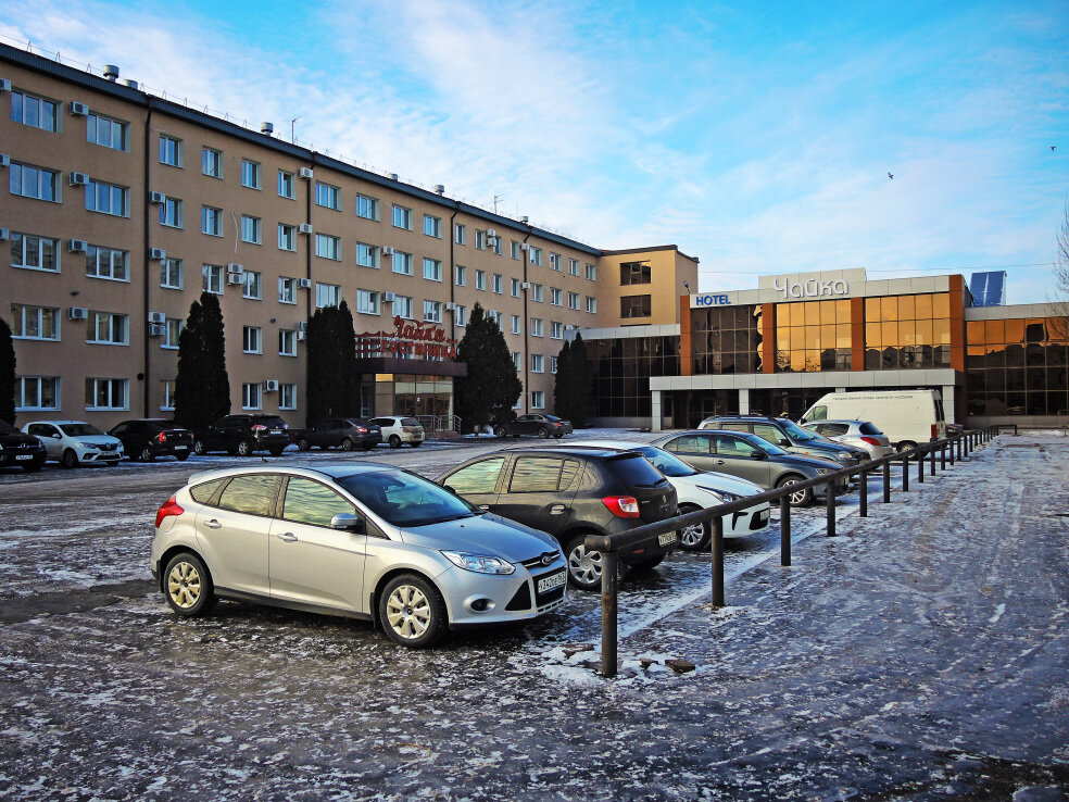 Гостиница «Чайка» находится в историческом центре по адресу улица Ульяновская, 57. Это улица, которая идёт параллельно главной улице центра - Советской. По информации в сети, здание построено в 1970 году. В 2009 году прошла реконструкция. Но общий проект, конечно, остался характерным для своего времени. Одна большая коробка с длиннющим общим коридором на каждом этаже. Какой-то более современный пристрой вроде бы есть. Но на тот момент он ещё не был открыт, что там, посмотреть не получилось.