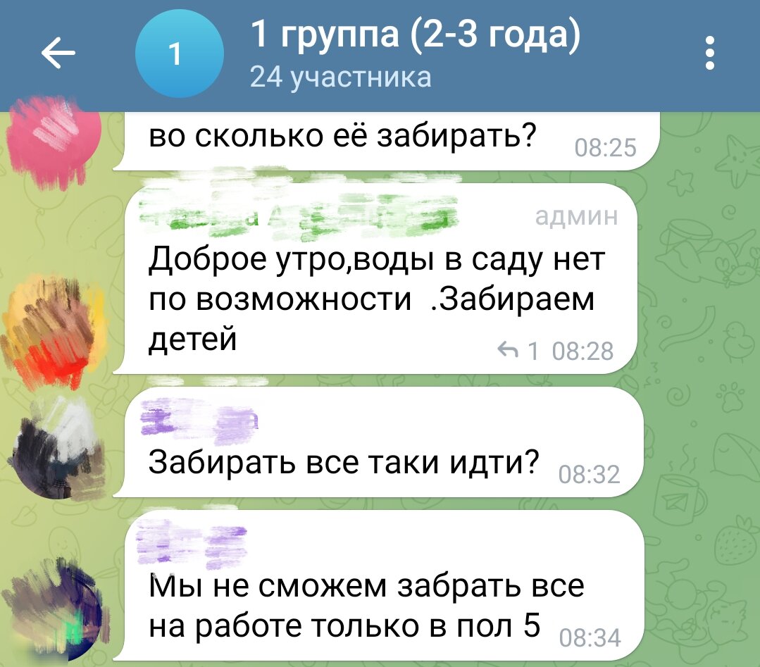 Второй день в саду после двухнедельного перерыва.. Леона сегодня еле растолкали. Проснулся взъерошенный птенец, пора уже стричь, хоть и не хочется. Вчера Леон начал плакать, как только закатились на территорию сада. Сегодня стоило нам из дома выкатиться - он всё понял. В раздевалке снова была девочка, которая просто без остановки кричит, поэтому сегодня прям дуэт у них с Леоном состоялся. Ну правильно, сегодня же музыка, будем считать, что дети репетируют. Марселька подвывал, поддерживал брата, как и вчера. Вышла воспитатель, спросила на сколько мы сегодня? Я развела руками, ей же виднее должно быть. Говорит: ну пусть пока на два часа. Думаю завтра-послезавтра попробуем увеличить, а то так и будем на месте топтаться. Мальчишки дружным хором зашли в группу. Ревут, но ноги несут их по коридору к игрушкам. На мать не оглядываются. Прибежала я домой, села завтракать и тут в чате такое сообщение.. У нас, действительно, в микрорайоне последние три дня перебои с водой. Два дня по веч
