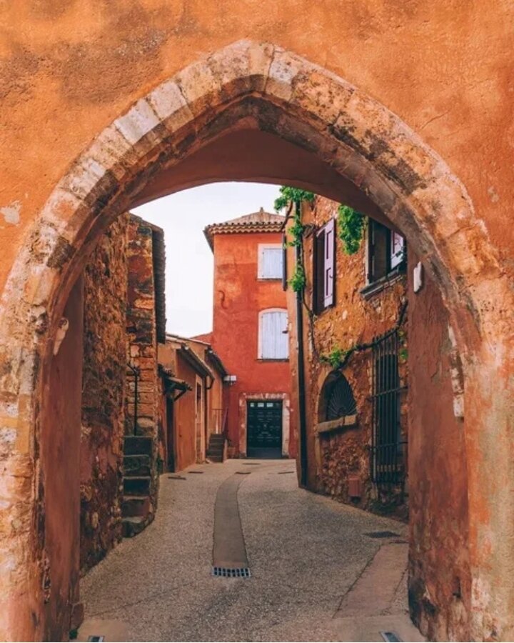 Этот маленький городок на скале в Провансе ошеломляет своей уникальной природной красотой. Топоним "Руссийон" запечатлел красный цвет окружающих скал, откуда веками добывали яркий минеральный пигмент, охру. Из-за множества оттенков жёлтого, охристого и красного на фасадах и стенах домов писатель и режиссер Жан Вилар назвал Руссийон "красными Дельфами": этот пейзаж, расцвеченный всеми цветами от кремового до пурпурного, действительно выглядит мистическим. Буйство красок обусловлено месторождением и разработками минеральной охры, окружающими городок. Но существует ещё и легенда, объясняющая почему скалы вокруг Руссийона окрасились в цвета заката. Местная красавица леди Сермонд, впав в отчаяние от несчастной любви и жестокости мужа - лорда Де'Авиньона, сбросилась с высокой скалы, своей кровью окрасив всё вокруг. Легенды легендами, но к счастью человеческие страсти не имеют никакого отношения к возникновению месторождения этого когда-то широко используемого пигмента. Добыча охры вокруг Р