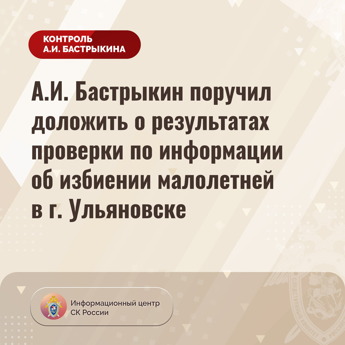 А.И. Бастрыкин поручил доложить о результатах проверки по информации об избиении малолетней в г. Ульяновске