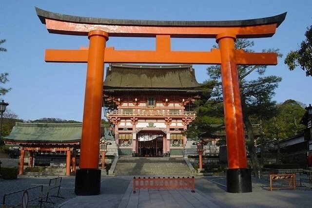 Фусими Святыня Инари является самым известным из нескольких тысяч святынь, посвященных Инари - синтоистскому богу риса в Японии. Его посланниками были лисы, поэтому при храме Вы увидите множество статуй лис. Храм Инари Фусими также известен бесчисленными воротами, через которые проходят паломники к подножию горы Инари сан. Здесь можно отведать суп из лапши и лопуха, покрытый сверху кусочками обжаренного тофу, любимой пищи лис Удон Кицунэ. Фусими Святыня Инари (Fushimi Инари Taisha) является важной синтоистской святыней в южном Киото и основана в 794 году. Она известна своими тысячами ярко-красными воротами тории, которые стоят позади его главных зданий и создают уникальный пейзаж на фоне зелёного леса. Они ведут в лес священной горы Инари, высотой 233 метров и принадлежит территории святыни. Входные Ворота Ромно, также являются достопримечательностью святыни, они были пожертвованы в 1589 году известным военным правителем, объединителем Японии Тойотоми Хидейоси. Слово 'Inari' озна