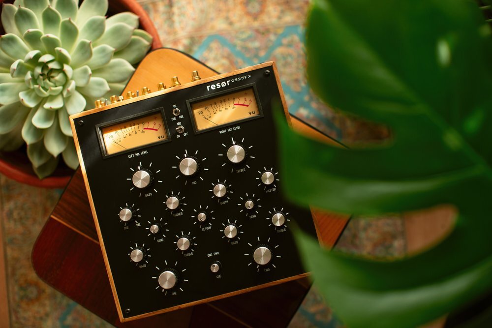 Немецкая компания Resør Electronics выпускает высококачественные роторные микшерные пульты в своей берлинской студии. В новой модели 2525FX инженеры перепроектировали и улучшили внутреннюю схему с использованием дискретного Op-Amp класса А. Это обещает аудиофильский уровень качества звука. Основным отличием от младшего брата Resør Electronics 2525 является наличие на борту секции посыла и возврата FX на каждый канал. В данной модели 2 канала с 2х-полосным эквалайзер на канал +/- 18 дБ (на 150 Гц), +/- 12 дБ (на 10 кГц). Мастер-эквалайзер/изолятор имеет 3 диапазона, 2 частоты кроссовера на частотах 310 Гц и 3100 Гц с полным отключением или до максимума +12 дБ. За индикацию отвечают 2 высококачественных аналоговых VU-счетчика с возможность отображения сигналов Cue или Mix. Микшер оснащен поворотным кроссфейдером между первым и вторым каналом. Входы