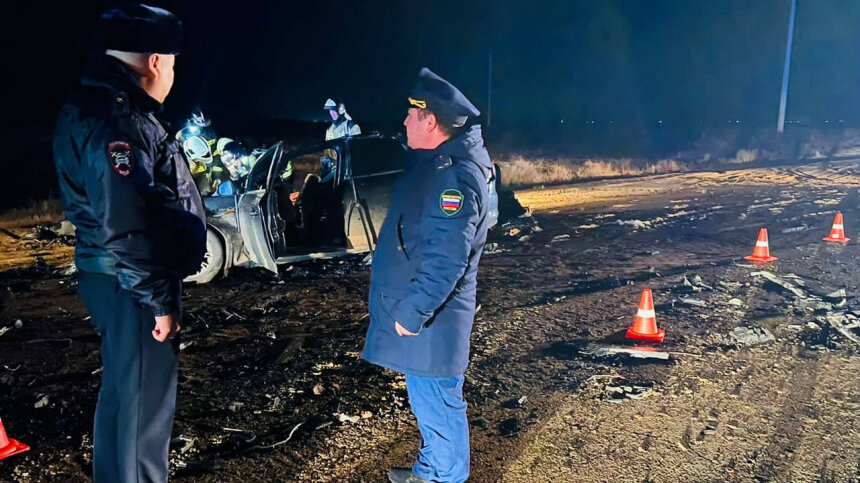 Три человека погибли на трассе под Астраханью. Там легковой автомобиль влетел в КАМАЗ.