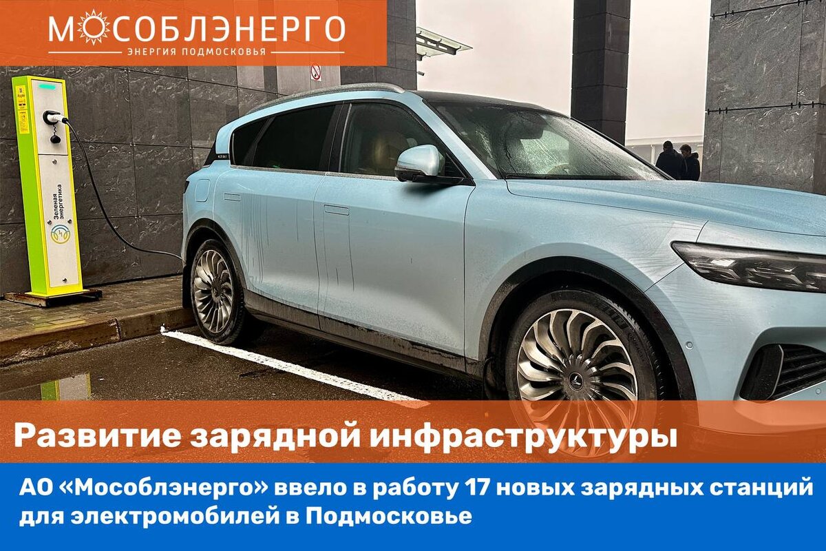 АО «Мособлэнерго» ввело в работу 17 новых зарядных станций для электромобилей в Подмосковье