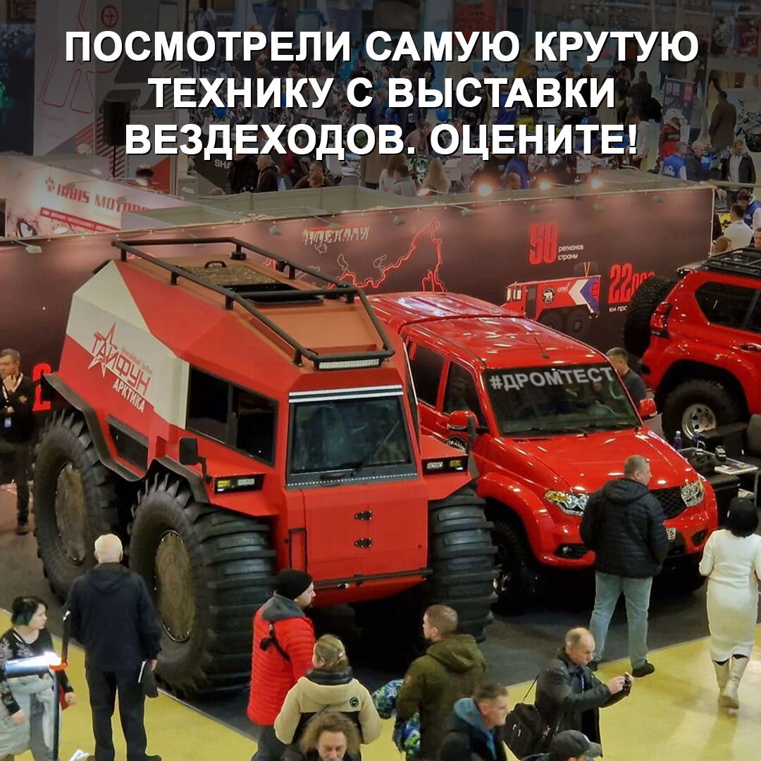 Чего только у нас не придумают, лишь бы не строить дороги 😅 Эти мероприятия прошли в Москве в первые дни декабря. Их основная тематика — путешествия и активный отдых. Среди вездеходов в основном была представлена отечественная техника, правда, её ключевые агрегаты чаще всего импортные. → Без малого 10-метровый Архант 10 с колёсной формулой 5х5. Поворот осуществляется за счёт механизма сочленения между вездеходом и прицепом. Двигатель — Cummins ISF 2,8 л, как у Газели. От 22 000 000 ₽. → Вездеход-амфибия Триумф — три дизеля на выбор, бортовые редукторы и система подкачки шин, полноуправляемое шасси, чтобы меньше травмировать поверхность при манёврах. От 6 900 000 ₽. → Калужанин — компактная версия Шерпа, дистанционное управление по радиоканалу, большой выбор допоборудования, включая лебёдку и водомёт, с кабиной — от 3 760 000 ₽. → Forester-1370 — бортоповоротная трансмиссия и полный привод, может преодолевать водные преграды вплавь, колёса прикрыты крыльями, мотор — 460-кубовый на 20 л