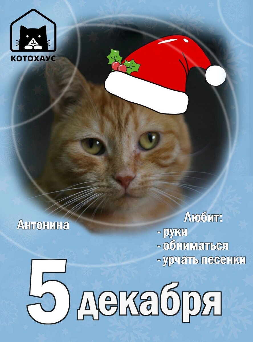 Друзья, давайте станем для подопечных КотоХауса личным Дедом Морозом и Снегурочкой! 🎅 На календаре #Новогоднее_Чудо_сКХ уже 5⃣ декабря! ☃️❄🎅 И у нас сегодня своё солнышко - Антонина! Антонина такая же ласковая и яркая, как лучик света в зимний день ☀ А её песни способны растопить сердце даже у Снежной Королевы! 🤭 Антонина столько времени живёт в приюте, но не перестала верить в Чудо! Это видно по тому, как она тянется к каждому человеку, как она проявляет интерес и инициативу понежиться и поиграть! Она все также ждет свою Семью, чтобы рассказать все свои истории и приключения... А пока мы загадываем желание, чтобы Антонина нашла дом, вы можете подарить ей и её друзьям подарочки под елку: 1⃣ Пакетик вкусного корма на новогодний стол. 🥫🍽 2⃣ Игрушку под елку, чтобы не скучать 🪁 3⃣ Лекарства, чтобы не болеть в новом году💊 4⃣ Средство для уборки, чтобы встретить Новый Год в чистоте 🧼🧽 5⃣ Самый главный подарок, который ждут все каждый день и Антонина в том числе - обрести с