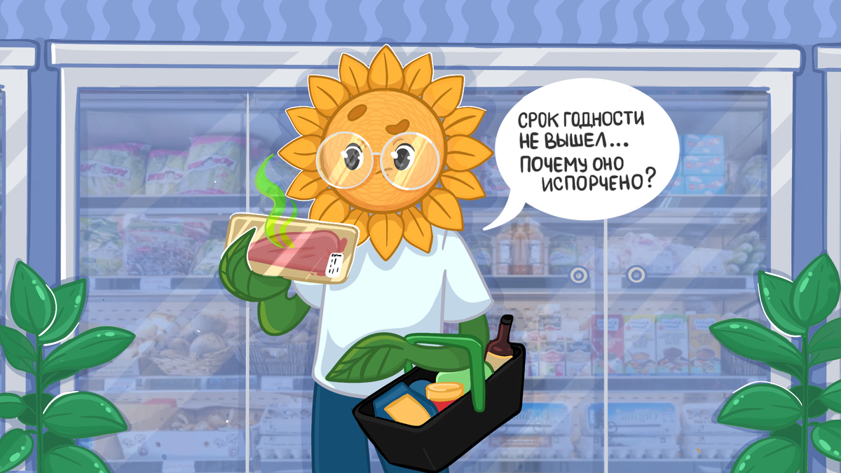 В начале месяца Подсолнух отправляется в супермаркет, чтобы закупиться продуктами впрок — на 3-4 недели. Перед тем, как положить продукт в корзину, он тщательно изучает не только его состав и срок годности, но и внешний вид. В последнее время он стал замечать, что еще не просроченные продукты оказываются уже испорченными 😒 Об этом говорят вздутые упаковки, плесень и белый налет на продуктах, а также неприятный аромат от них. Подсолнух поискал актуальные исследования и нашел подтверждение своим опасениям: Их находят в сливочном масле, молочной продукции, мясе и даже в сладостях. 😠 Подсолнух был возмущен до глубины души! Как якобы свежий продукт на деле может оказаться опасным для здоровья? Разумеется, он решил разобраться, в чем дело. Почему продукты в магазинах портятся раньше, чем выходит их срок годности? Чтобы выяснить причины, почему продукты портятся раньше времени, Подсолнух обратился к владельцам торговых сетей, товароведам и экспертам Роскачества. Вот, что он выяснил: Почти