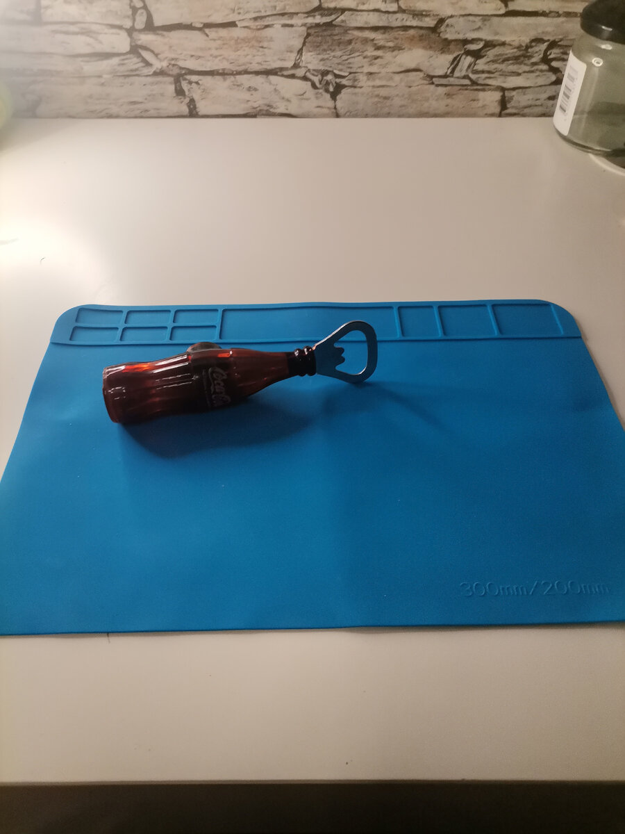 Считаю, что начинать нужно с легкого, и первую игрушку я решил попробовать сделать из папье –маше. Для создания макета мне понадобилось немного: собственно, форма для будущей игрушки (в моем случае, это открывашка в форме бутылки колы), материал для самого папье маше (макулатура, газета, бумага, порванная на маленькие кусочки), клей (в моем случае, это Titebond с подходящим к концу сроком годности) , кисть для рисования (самая обыкновенная), емкость для смешивания папье маше ( в моем случае это стеклянная баночка из под тушенки «Мираторг») и небольшой резиновый ковричек для удобства работы. P.s. Клей можно использовать ПВА или варить клейстер ( мы, допустим так и делали в своем детстве). Тушенка «Мираторг» неплохая). После того, как рабочее место мы собрали, подготовили самое необходимое, приступаем к процессу создания. Для начала подготовленную бумагу рвем на маленькие кусочки и заливаем теплой водой и ждем минут 5, чтобы бумага впитала в себя влагу. После сливаем лишнюю воду с банки