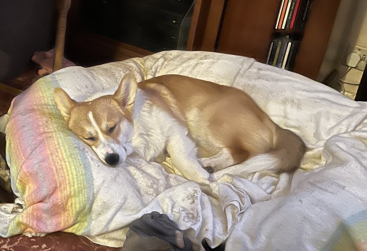 Потом ма привязала меня на поводок, уложила под столом, и я поспал.