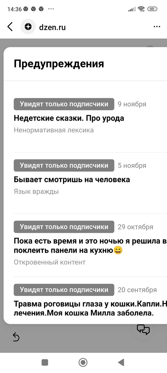 Ребята, я не знала как смотреть предупреждения на телефоне, но один из моих друзей подсказал и я решила Вам наглядно показать сканы с моего канала. Сначала меня удивили эти предупреждения, удалила их сразу 🤔 1.Заходите в студию своего канала 2. В студии блогера зайдите в Монетизацию 3. В разделе монетизации пройдите в самом низу чтоб открыть версию для компьютера 4. В открытом окне найдите в правом верхнем углу человечка и кликните по нему 5. Откроется окно и третья строка и будет представлять собой предупреждения 6. Я Всё проверив удалила и меня похвалили🤣👍 Всем всего доброго!