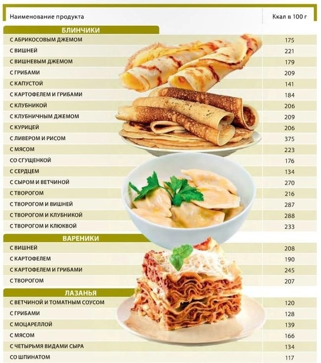 Таблица калорийности продуктов