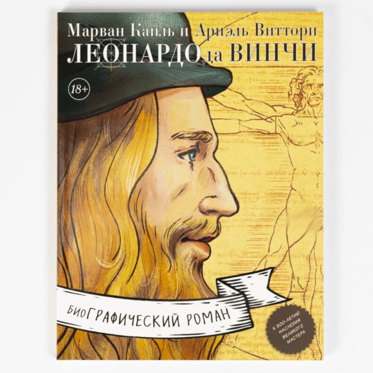 «Леонардо да Винчи: возрождение мира». Камиль Марван и Ариэль Виктори/пер. с франц. М. Нилова. - Москва: Эксмо, 2019. - 128 с. (биоГРАФИЧЕСКИЙ роман) 📖 ИСТОРИЯ Немного детства «незаконнорожденного» от крестьянки да Винчи. Дружба с Боттичелли. Опять эта «модная» гомосексуальная повесточка :(. Изучение строения тела человека - гонения церкви. Инженерные изыскания. Всего понемножку. 🎨 ГРАФИКА Цветная. Похоже «гуашь» или «темпера» с живым контуром кистью. Шрифт в пузырях неудачный, ИМХО. Кадры крупные, чаще стилизованы под фреску. Персонажи слегка гротескны и нарочито «нарисованы простовато» ;). Такой вот «наив» Эпохи Возрождения. Своеобразно, интересно. Мне нравится. 🔥 ВЫВОД Я листал с интересом. Узнал новое. Мне понравилось. Рекомендую. Кстати, было дело - образ Леонардо некогда владел и моим умом... В итоге я... вырезал его из дерева (см. фото). В основе работы - известный автопортрет Леонардо. ➲ ССЫЛКИ биоГРАФИЧЕСКИЙ роман ☆☆☆ Дочитали? Большое вам спасибо! Буду рад "лайку" и ком