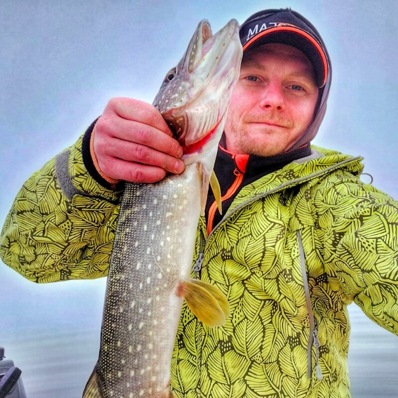 К этой рыбалке я подготовился куда основательнее. Решил, что мельчить не буду совсем. Оснастил несколько приманок от шести до восьми дюймов стингерами — и в бой! Утро встретило морозцем и густым туманом. Видимость — метров пятнадцать. С середины пруда не было видно берегов. Найти работавшие в прошлую рыбалку точки было очень непросто. К нашей радости, поклёвки начались с первых забросов. Но на резину 6-6,5″ клевала не та щука, за которой я приехал. Решаю поставить самую крупную из имеющихся у меня приманок — восьмидюймовый Easy Shiner весом 43 г с подвесом шестиграммовой капли. Для Norstream Favorite Jig 862MH это верхняя граница весового диапазона, но с забросом всё в порядке, даже чувствуется запас. Медленная равномерная проводка даётся легко. Задевы за дно ощущаются. Есть понимание, когда стоит немного ускорить темп проводки. Но заброс следует за забросом, а поклёвок нет. Тем временем напарник ловит уже третью щучку. Терпение на исходе, но желание разловить восьмидюйм