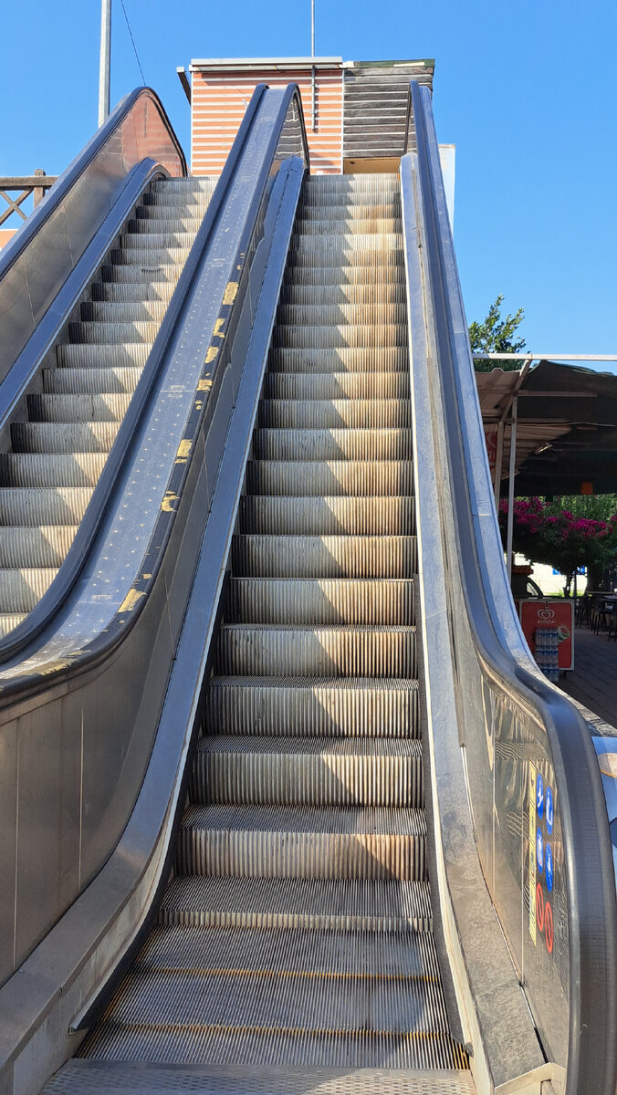 Очень удобно не подниматься по лестнице, а расслабиться на жаре и отдыхать) Пользуются большим спросом все, особенно тот, что около аттракционов. Вид на горы Кемера с перехода шикарный, особенно, когда нет дымки. И в другую сторону совсем не хуже). Так выглядит один из переходов и вид сверху на жилые дома. А так на спуск в город. Как можно заметить, в таких места мусор частенько встречается. Самый популярный переход наверное- этот, который находится рядом с большим мигросом. Напротив парка аттракционов. Сюда же приезжают автобусы из Кемера. Так что приезжайте прокатиться))).
