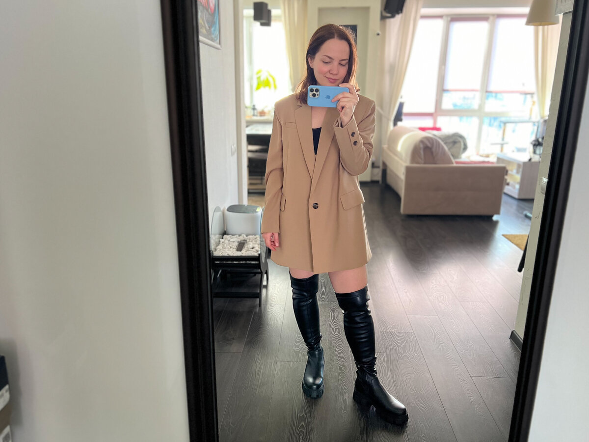 Вот очень давно я хотела такие ботфорты, чтобы можно было носить с длинными пиджаками, худи и рубашками. Да денег было жалко, потому что я не планирую их часто надевать.