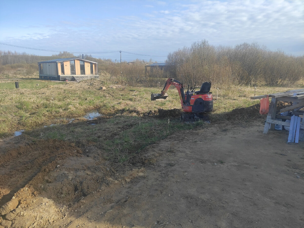 📌 Выровнял участок ранее выбранным грунтом ❗с уклоном от дома, сверху накрыл 20 куб.м. плодородным грунтом. 🚜