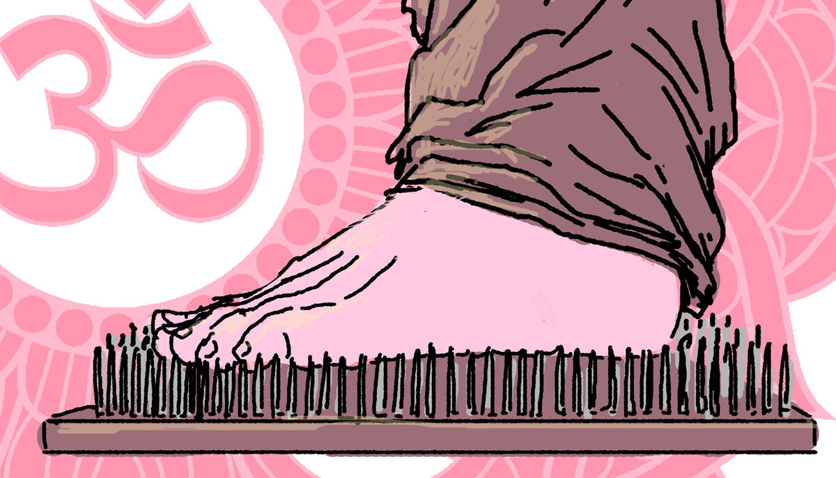 За счет просчитанного расстояния между гвоздями на досках Садху они не протыкают кожу, нагрузка аккуратно перераспределяется, и острые иголки как бы массируют наши стопы. Поэтому практику гвоздестояния относят к рефлексотерапии.