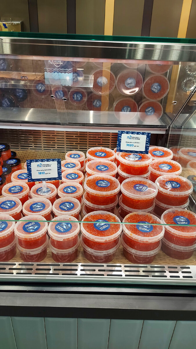 Совсем недавно в Москве открылся рыбный рынок "Москва на волне". И конечно мы решили посетить его и сравнить с рыбными рынками в других странах. Находится он в ТЦ Город в Косино. Найти его внутри не так уж и просто. Указатели есть, но их мало. Мы были в будний день вечером, поэтому народу было немного. Площадь рынка совсем не большая, два этажа. Вход оформлен в морской тематике. Неприятного запаха не было, как на рынках Азии или Африки. Но может быть просто потому что недавно открылись. Ассортимент сразу показался не очень большим. Но в принципе все есть. Икра, рыбные деликатесы, консервы, много замороженной рыбы. В аквариумах живые крабы, раки, устрицы и т.д. Есть даже прилавок где вам сразу могут приготовить то что вы выберете. Большой выбор креветок, селедка и килька в бочках. В общем каждый сможет себе что то найти. Цены, как и следовало ожидать, довольно высокие. Икра например дешевле в Глобусе. Мы взяли кусок осетрины горячего копчения. Жалко что нарезку они не делают. Только ку