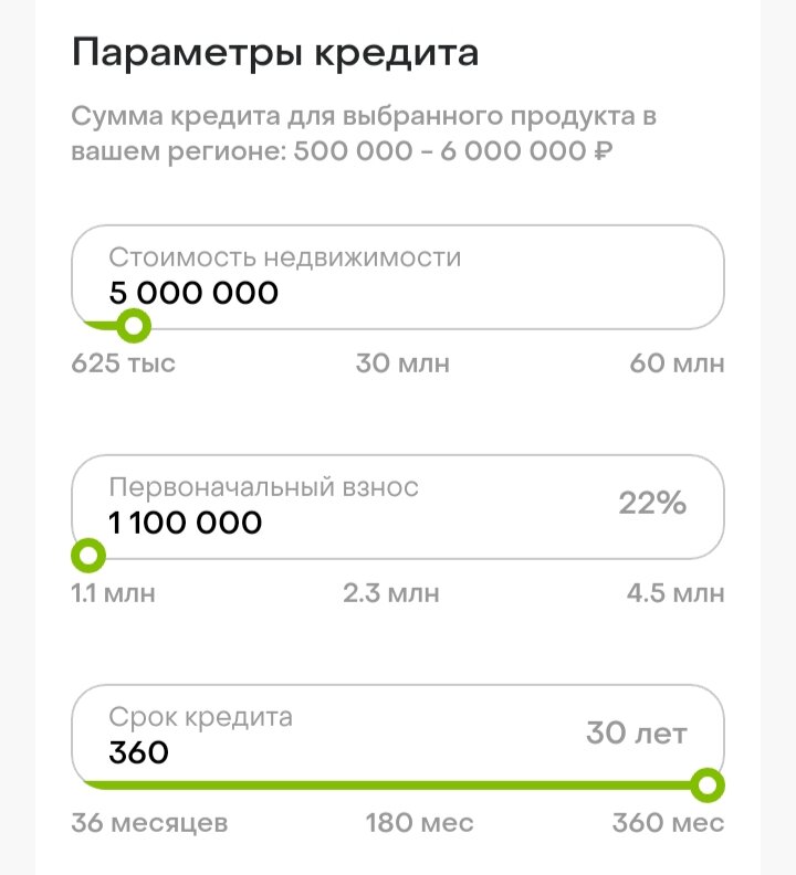 Приветствую вас на моем канале. Заметил в комментариях к моим статьям непонимание по поводу моего желания взять ипотеку. И решил провести небольшое сравнение двух сценариев покупки одной и той же квартиры. Условимся, что не покупать квартиру мы не можем. Нам она просто необходима. Предположим также, что вся сумма на покупку квартиры у нас есть. Фактически деньги наши сейчас в бетоне, золоте и акциях, но если все продать, то 5 млн. рублей мы точно наскребем. А именно такую сумму мы собираемся потратить на нашу будущую квартиру. Давайте сначала рассмотрим вариант со льготной ипотекой. Для этого зайдем на сайт банка, и введем все требуемые нам параметры. Итак, стоимость квартиры выставляем 5 000 000 рублей. Первоначальный взнос выставляется сам, 1 100 000 рублей. Итого у банка мы занимаем 3 900 000 рублей на 30 лет под ставку 5,7% годовых. В калькуляторе почему-то стоит ставка 5,8%, но не будем обращать на это внимание. Хотя, может и стоило бы 🤔 Итак, калькулятор выдал нам заветную сумм