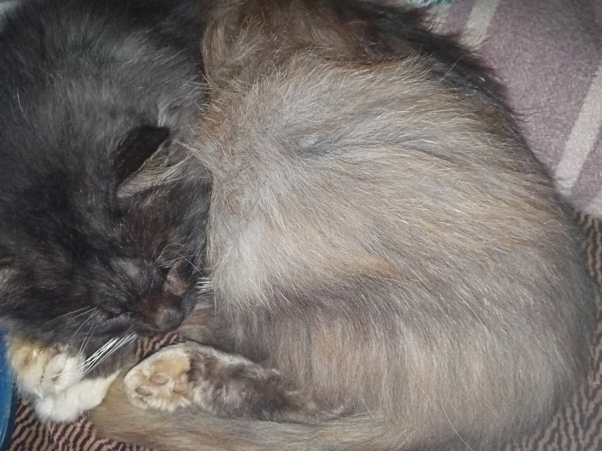 Здравствуйте, мои дорогие! Странное что-то происходит, может в погоде дело, может ещё в чем, но наши кошки начали немного беспокоить. Вчера села в интернете искать, сколько обычной кошке нормально спать, потому как такого я ещё не наблюдала - три из наших спят практически сутками. Пообедать, правда, не забывают. Но придут, поедят и обратно на бочок, причем место каждый сам себе выбрал, причем иногда очень странные. Кто, по-человечески, на диване, кто в ванной, в корзине с тряпьем, а кто и на шкафу. Ну это ладно, пусть спят где хотят, лишь бы не болели. Но интернет не очень меня успокоил, положено кошкам спать примерно 16 часов, итак две трети дня получается. Наши же, наверное, 23 часа из 24 спят и не первый день уже. Как думаете, есть повод для беспокойства? С другой стороны, к миске шуршат бодро, кушают хорошо, шерстка блестит. А мышки шуршат активно на чердаке, их же ловить некому, спят "охотники". Может и ничего страшного, просто сезон такой? Нам и самим спать больше обычного хочет