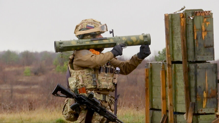 На этих кадрах показана подготовка и боевое слаживание огнеметчиков подразделений группировки войск «Запад» с применением реактивных пехотных огнеметов «Шмель» на одном из полигонов в тыловом районе зоны проведения СВО.