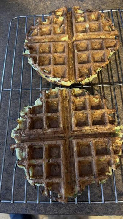 ✓ Кабачок – 400 г; ✓ Яйца – 2 шт.; ✓ Мука из бурого риса – 50 г; ✓ Соль, перец, кинза. Кабачок натерла на терке, отжала выделившуюся жидкость. Добавила яйца, 3 ст.л. коричневой рисовой муки, соль, перец, кинзу. Все хорошо перемешать и выпекать в вафельнице. КБЖУ вафель (~500 г) – 388/18/11/56. На завтрак – пару вафель (~150 г) и салат из овощей, заправленного растительным маслом (250 г). КБЖУ – 255/8/14/28. + 3 фото От наших друзей: Вадим Эйленкриг, российский джазовый трубач, на Радио Медиаметрикс Больше общения и рецептов - в группе "Рецепты для диабетиков" в ВКонтакте! Рецепт на странице Автор рецепта – Ayash Strickland © Почтенный возраст Online и Рецепты для диабетиков