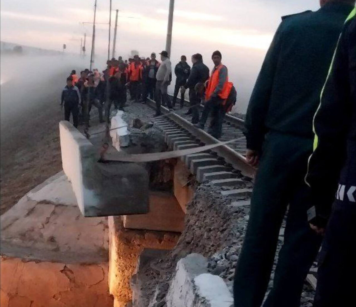 Грузовик снес балку железнодорожного моста в Джизакской области