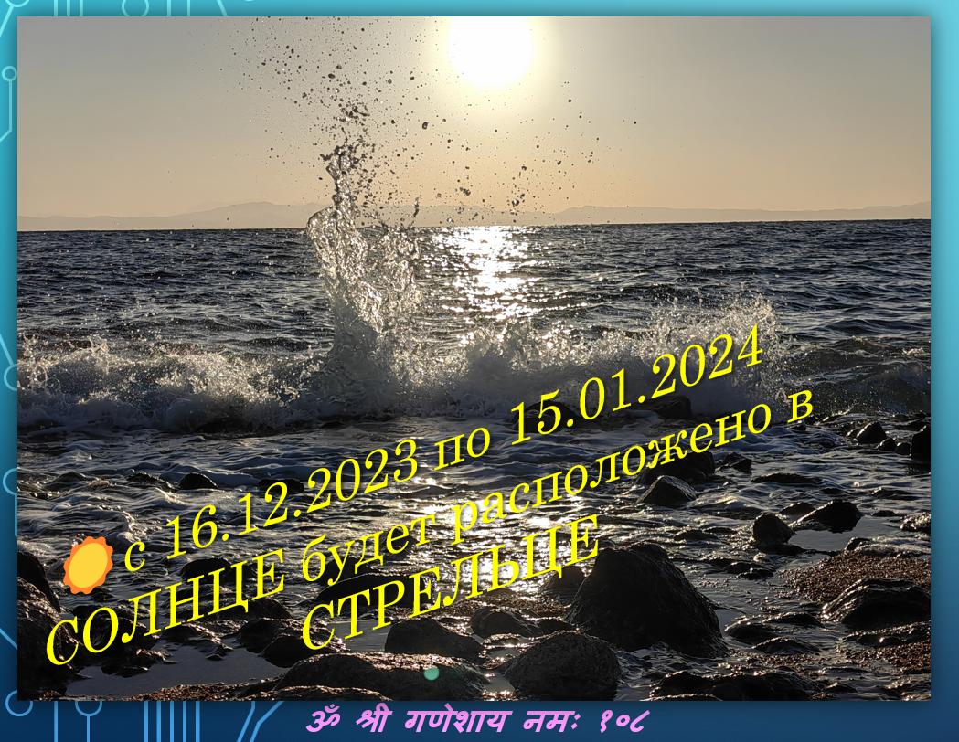 Итак, Солнце с 16.12.2023 по 15.01.2024 будет расположено в дружественном знаке Стрельца.
