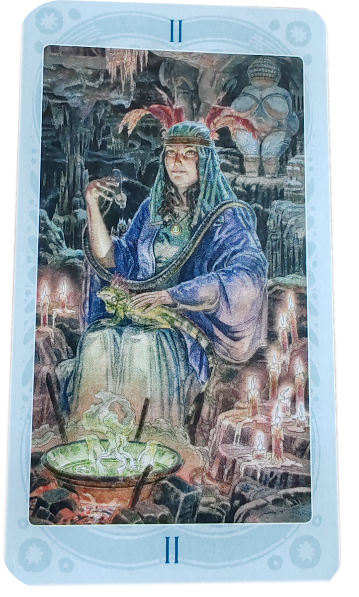 Она представляет собой воплощение женского начала, воды и информации. Жрица служит передаче и получению знаний, обладает дипломатическими способностями и глубиной мышления. Жрица – это символ двойственности, олицетворение чувственности и бессознательного. Она является выражением женственности, интуиции и внутренней мудрости. Эта энергия позволяет нам глубже погрузиться в наши эмоции и воспользоваться своей интуицией для принятия правильных решений. Визуально Жрица изображена как женщина сидящая на троне, держащая в руках свиток с знаками луны. Она окружена густой зеленью, символизирующей ее связь с природой и бессознательным миром. Жрица надежно укрыта от внешнего мира, что говорит о ее внутренней силе и независимости. Ключевым аспектом Жрицы является ее способность передавать и получать информацию. Она является связующим звеном между нами и высшими силами, между рациональным и инту
