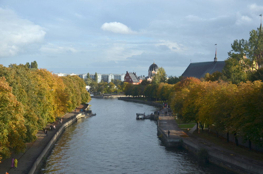 Много лет мечтала увидеть Калининград таким, золотым, и вот первый раз в октябре прошлого года почти_получилось :) 14 октября, и там на самом деле, «золотая осень» еще не наступила. Почти все деревья были зелеными, только каштаны, которых так много на острове Канта, не подвели. Вылетали мы в воскресенье днем, приехали в Калининград в субботу, заранее, чтобы погулять. И сразу же помчались на Остров — закрывать летний гештальт. Хорошо, что тетенька со стеклом была на месте. Я это стекло люблю и покупаю с 2008 года. У нас был и городок, и магнитик за 300 рублей и мышь такая конечно (Оля сразу отломала ей хвост) Они делают невероятное количество всего прекрасного Почувствуй себя Сальвадором Дали! А еще у них прямо там на Острове бывают типа мастер-классы — сиди и складывай. Но можно купить набор и делать его дома. В октябре мы так и поступили, Оля выбрала котика и тетенька набрала ей мешок стеклышек. Клей, все дела. А потом мы уже со спокойной совестью отправились гулять На набережной Прег