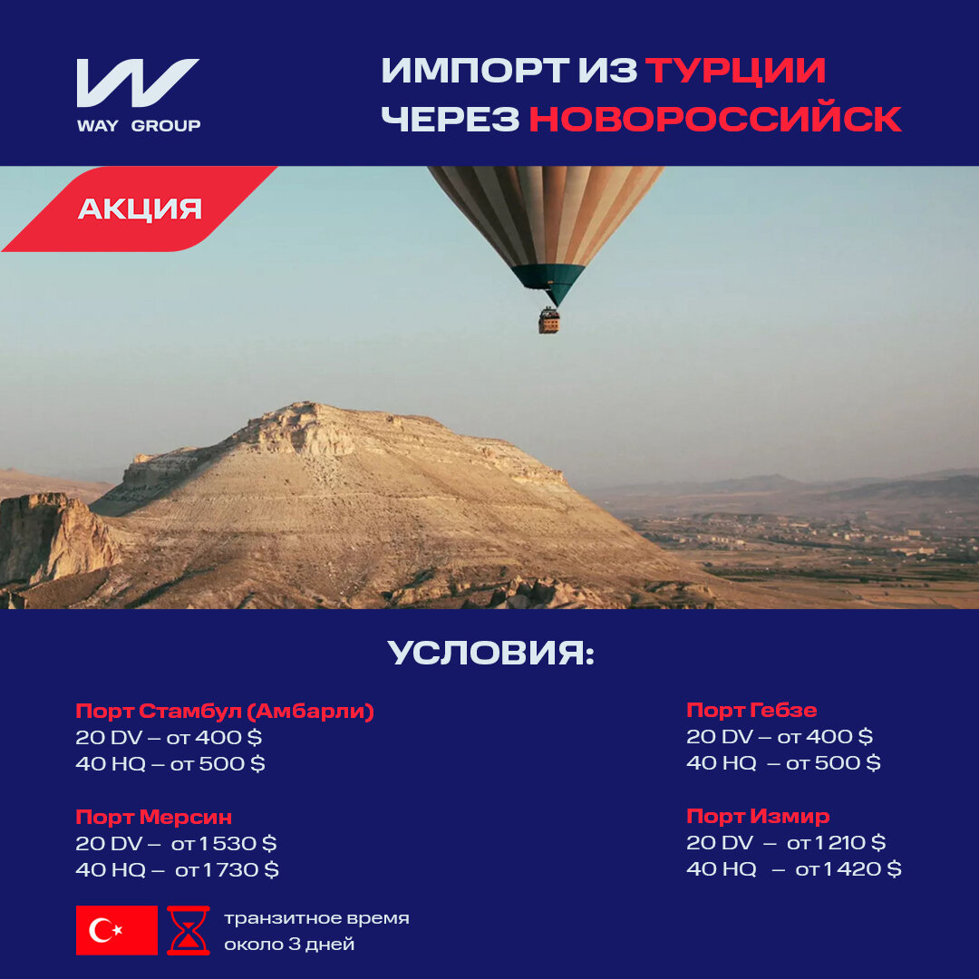 WAY GROUP предоставляет логистические решения для доставки грузов из Турции в Россию с полным спектром услуг от поиска поставщиков, оформления документов до доставки товаров до конечного пункта назначения в любой регион России через Новороссийск: