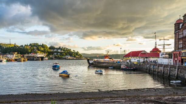 Гуляем… Ну а эти полтора часа, как и любое другое свободное время, вы можете провести, прогуливаясь по ухоженной набережной и восхищаясь элегантными шотландскими, и не только, пенсионерами, дойти до художественного магазина и полюбоваться многочисленными картинами с видами Обана, Хайлэндских островов (о поездке на некоторые из них рассказ впереди), океана и многого другого… Есть время прогуляться и до Колизея МакКейга, но смотреть там, по сути, нечего. Поэтому вернитесь по центральной улице, с интересом изучая витрины, а то и заглядывая в многочисленные магазины и магазинчики за известными на весь мир «шотландками» (менее распространенное, но более правильное название материала – «тартан» – плотная шерстяная ткань в клетку, используемая, в частности, для пошива национальных шотландских юбок – килтов) или различными сувенирами. Да в конце концов, вы можете присесть на одну из многочисленных лавочек и просто насладиться спокойным величием Атлантического океана, м