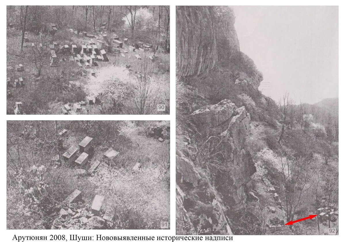 Автор ряда монографий о старых кладбищах Арцаха, коренной шушинец Грачик Арутюнян, который на протяжении многих лет изучал надписи старых кладбищ и историко - архитектурных памятников Шуши, констатировал наличие в исторической цитадели армянства Нагорного Карабаха – городе Шуши – несколько старых кладбищ: 4 армянских, 1 русское, 1 армяно-русское, 1 персидское. Своей целью исследователь ставил «по возможности спасти от забвения останки прошлого, тем самым не позволить посторонним фальсифицировать историю».