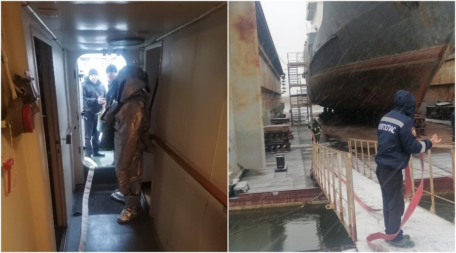 Огнеборцы «Волгоспас» на территории судоремонтного завода потушили условный пожар