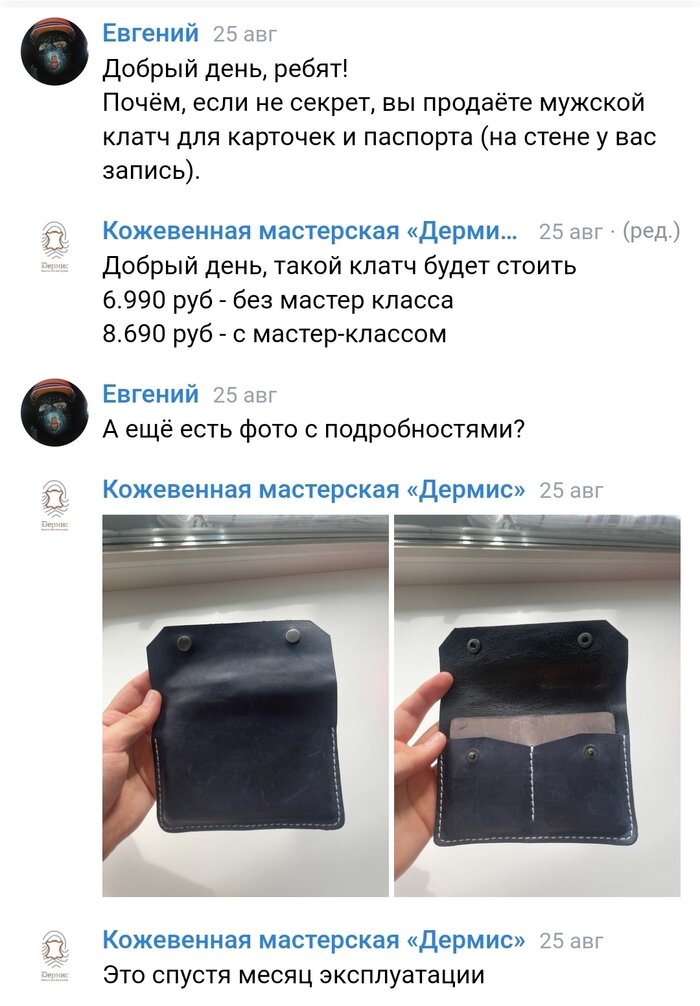 Всем привет. Открылась у нас в городе кожевенная мастерская. Для нашего города и лично для меня это - событие. Молодые люди получили грант губернатора, открыли мастерскую, проводят мастер-классы для всех желающих, продают свои изделия поделки. Решил с ними законтачить. Ну ладно. Из добрых побуждений решил помочь. Дал несколько советов по технологии, главное - по ценообразованию. Дал ссылку на Кожевенное содружество в телеге. И что? Так же вежливо послали. Ну и ладно, пошёл я. Но недавно ещё один пост от них. Вот, что продают. Тут меня чуть понесло. Предложил делать для них кардхолдеры (обещал попробовать такой же кривой шов сделать) за 2к, они рисуют эмблему и продают своим лохам клиентам. Тишина. Вот мой диагноз. Ребята просто сидят и просаживают губернаторские деньги создавая видимость работы. Чтобы не было реальных заказов, взвинтили цены. А я считал их коллегами по ремеслу) Пост автора Leatherman16. Читать комментарии на Пикабу.
